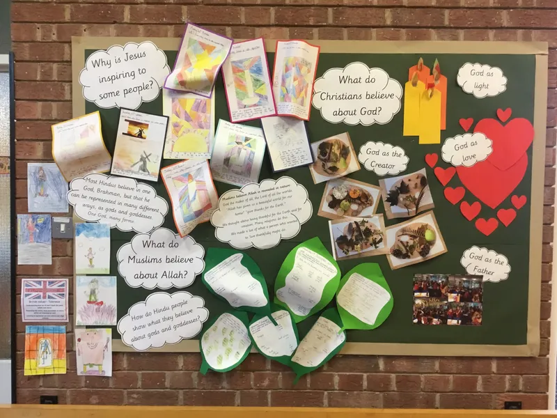 > Teachers dedicate at least 5% of curriculum time to R.E. through lessons, theme days and school trips to different places of worship.